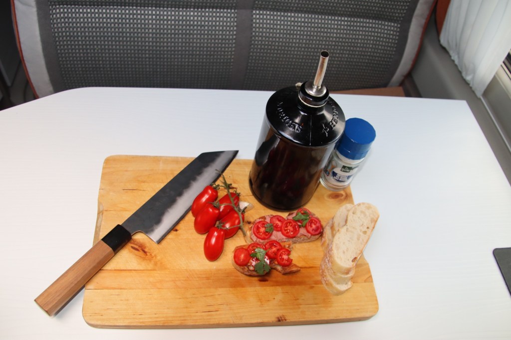 Sollte Brot über bleiben: Aufschneiden, toasten, mit angeschnittener Knoblauchzehe reiben (weil das Brot Konsistenz hat, zerfleddert es auch nicht dabei) und nach Belieben belegen. Fertig ist das britische Crostini: