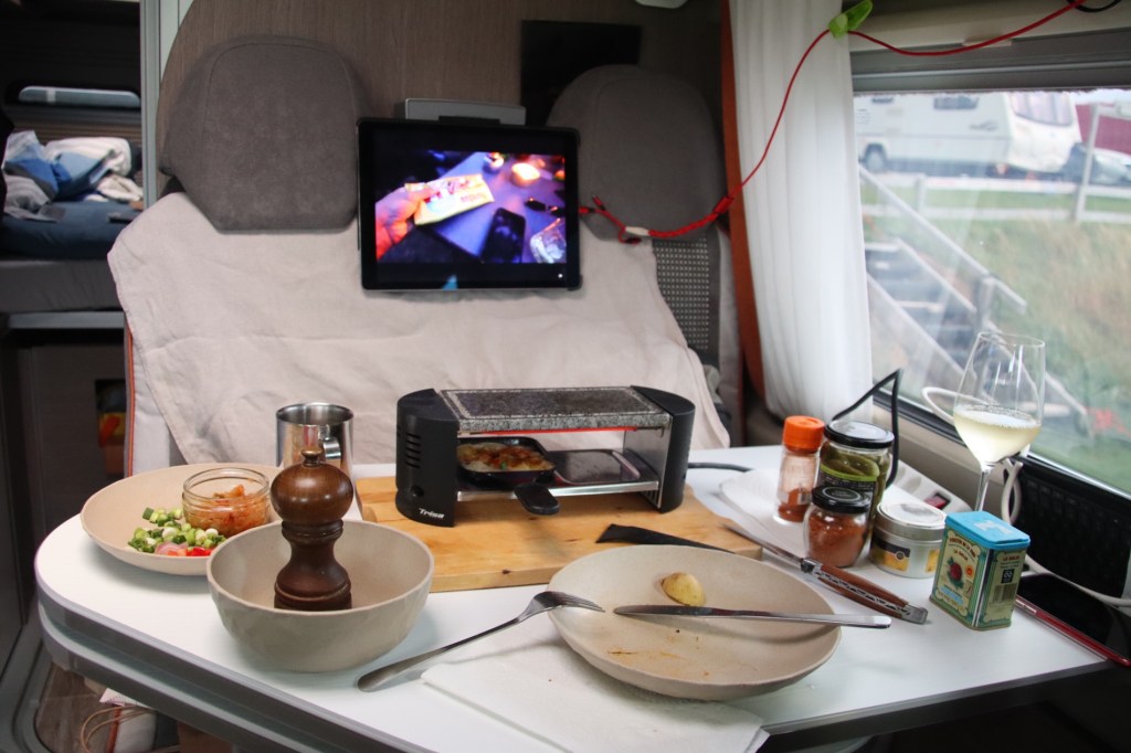 Das ganze Raclette hat ca. 30% Kapazität (~30 Ah) gekostet. Der Stromverbrauch für Heizung und Kühlschrank schlagen dann noch über die Nacht mit ca. 13% zu Buche. Somit ist der Stresstest für die Batterie bestanden. Einzig der Stromertrag über die Solarpanele auf dem Dach ist um diese Jahreszeit und so hoch im Norden eher mau. Ein portables, faltbares Solarpanel wird wohl in der nächsten Saison dazukommen.