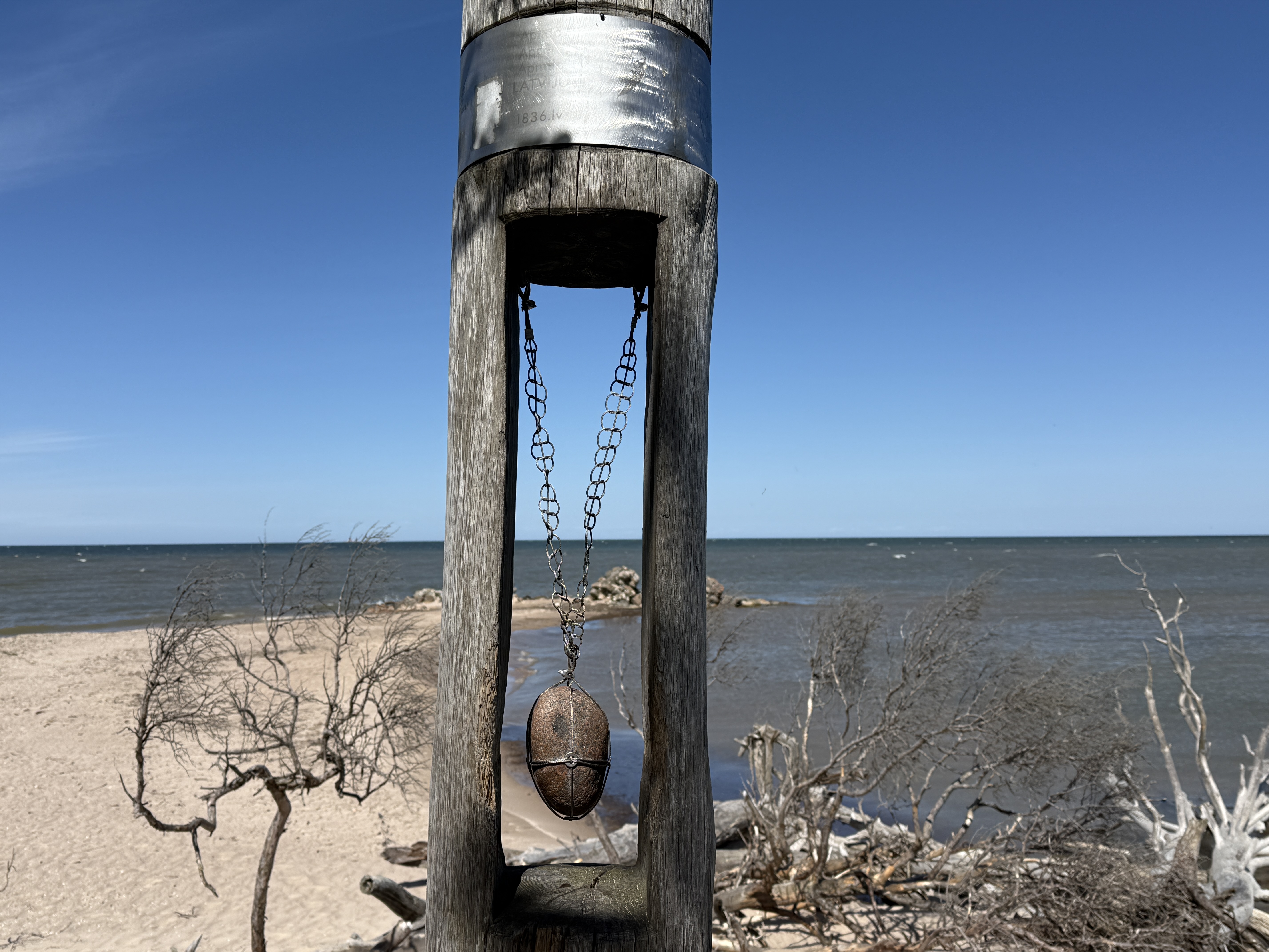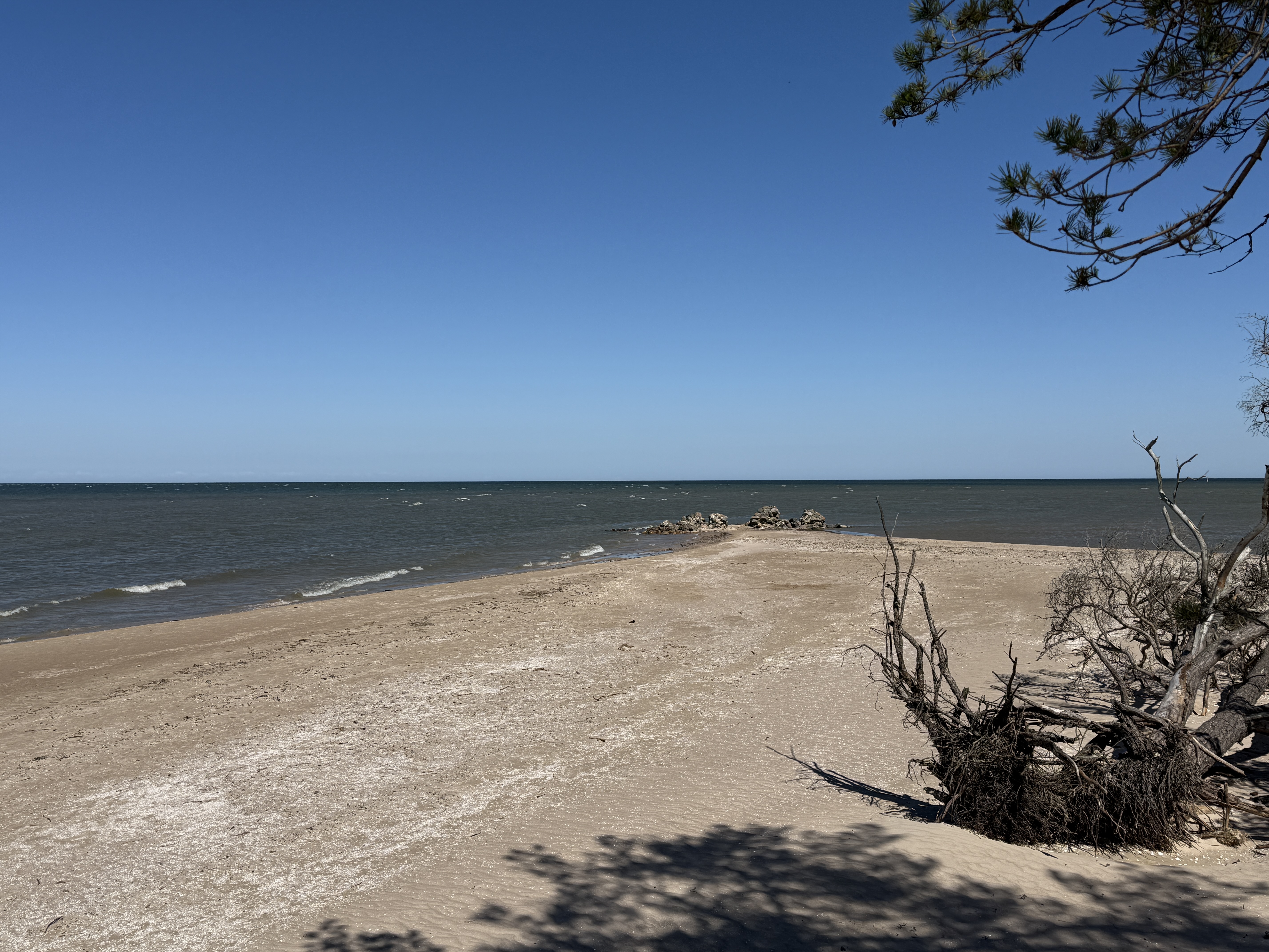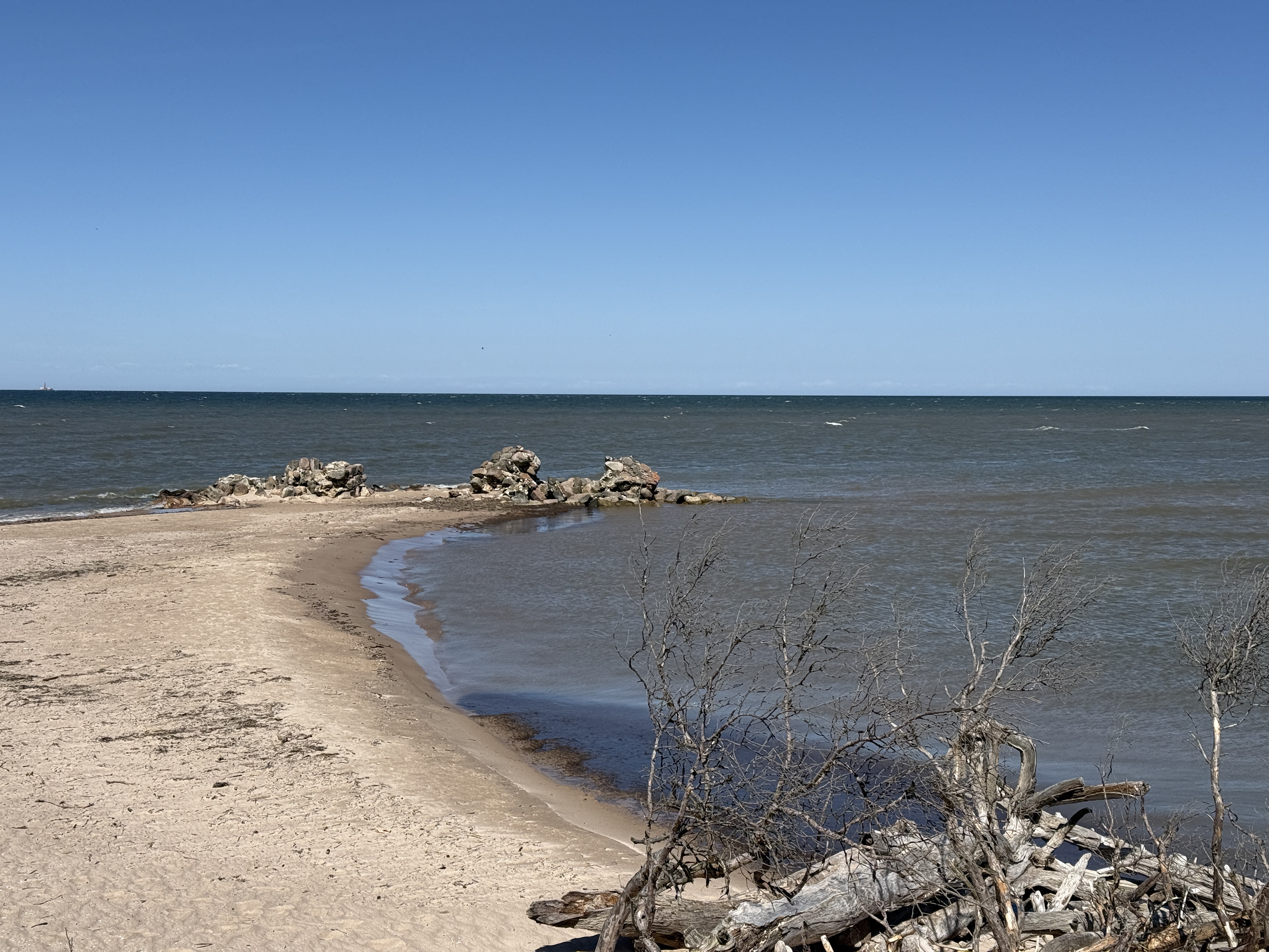 Links ist die Ostsee, rechts die Bucht von Riga. Und ist das Kunst oder kann das weg?